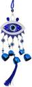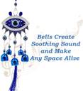 Pseudo Pseudo Big Evil Eye Wall Hanging With Bells For Main Door Balcony Positive Vibes Brass Windchime (16 inch, Blue, Silver)