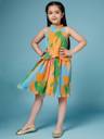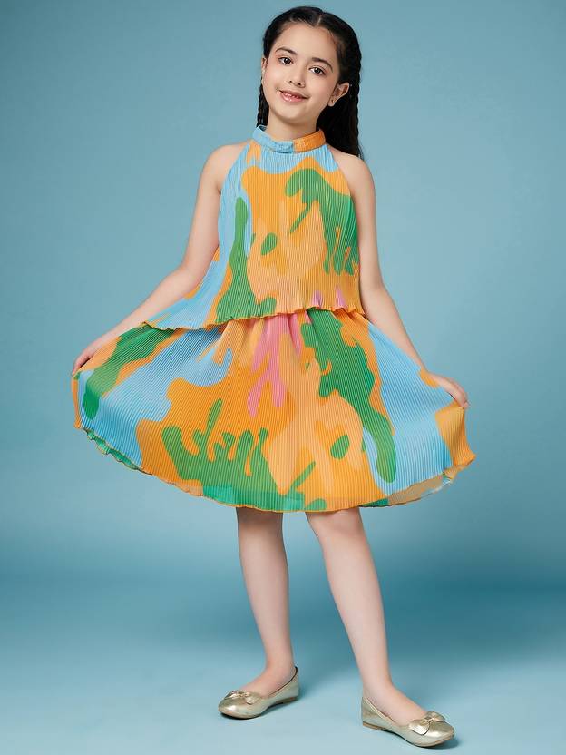 Pspeaches Indi Girls Midi/Knee Length Party Dress (Orange, Sleeveless)