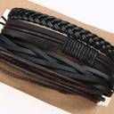 QUADRA-FUSION INFINITY BLACK - Leather Bracelet Set, 4pcs Black Genuine Braided Leather Bracelets, Tribal Woven Ethnic Wrap Infinity Bracelet for Men & Boys