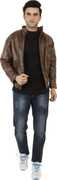 This stylish regular fit jacket in the display has full sleave and stand collar. Inside one pocket and branded zippers, this faux leather jacket is light in weight and will ensure cofort all time.