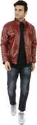 Men Solid Leather Jacket