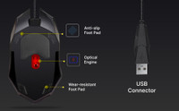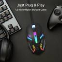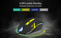 pTron Flick M12 Wired Mouse offers a slim, ergonomic design with a 1.5m nylon-braided cable for tangle-free use and multi-color breathing lights for style. Its precision sensor with soft clicks ensures quiet, accurate performance. With four adjustable DPI levels (800/1000/1200/1600), it adapts to work, study, or gaming. The plug-and-play USB-A connector ensures wide compatibility, making it a reliable, durable, and stylish choice for everyday use.