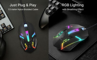 Enjoy smooth performance with the Flick M12, equipped with a durable 1.5m nylon-braided cable that resists tangling for a hassle-free setup. Its simple plug-and-play design ensures instant usability without the need for additional drivers. Adding a touch of flair to your workspace, the breathing multi-color lighting effect combines function with style, making it suitable for both laptops and desktops.