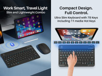 This pTron Keyvo KW4 slim Bluetooth keyboard with 78 keys, 11 multi-media hot keys, paired with a Bluetooth mouse, brings style and efficiency to your workspace. The compact, lightweight design ensures easy portability, while the smooth, wireless performance delivers comfortable typing and precise navigation on laptops, tablets, or desktops.