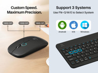 This Bluetooth combo includes a slim, lightweight mouse with 3 adjustable DPI levels (1000/1200/1600) for smooth tracking and precision. Paired with a Bluetooth keyboard that offers wide compatibility with various operating systems, it ensures seamless wireless connectivity, comfort, and portability for everyday use.