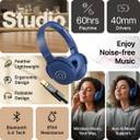 PTron Studio w/ 60hrs Playtime, HD Mic, 40mm Drivers, Dual-device Pairing, BT5.4 Bluetooth (Blue, On the Ear)