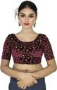 The velvet fabric adds a touch of glamour and sophistication to the blouse, making it perfect for parties, weddings, festivals, and other special occasions. The fabric has a slight stretch that makes the blouse easy to wear and provides a comfortable fit without the need for any alterations or hooks and zippers.