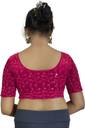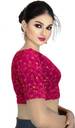 The velvet fabric adds a touch of glamour and sophistication to the blouse, making it perfect for parties, weddings, festivals, and other special occasions. The fabric has a slight stretch that makes the blouse easy to wear and provides a comfortable fit without the need for any alterations or hooks and zippers.