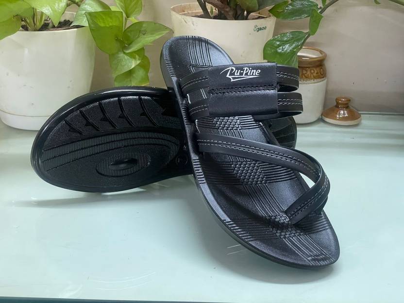 Pu-Pine Men Slippers (Black , 6)