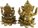 Brass Statue/Idol of Goddess Laxmi/Lakshmi and Lord Ganesh/Ganesha Sitting on Lotus for blessings. Ideal for Diwali/Deepawali pooja and gifting