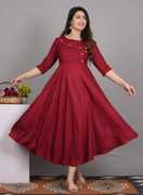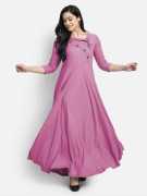 Puebell Women Solid Flared Kurta (Pink)