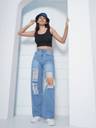 Puella's Straight Fit High-Rise Distressed Jeans, designed for trendsetters who love a bold, edgy look. Crafted from 100% cotton fabric, these jeans offer superior comfort and breathability, making them perfect for all-day wear.