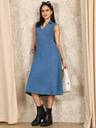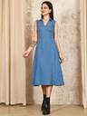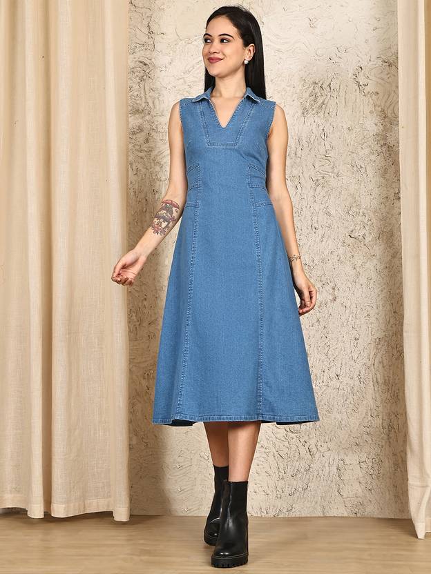 Puella Women A-line Light Blue Midi/Calf Length Dress