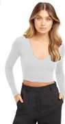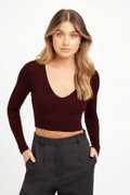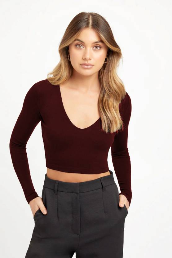 Black solid croptop has a v neck, full sleeves, and Slip-on closure.