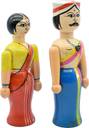Puja N Pujari Channapatna Traditional Village Couple Dolls Set Toys For Kids And Home Decoration Decorative Showpiece - 17 cm (Wood, Multicolor)