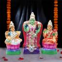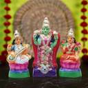Puja N Pujari Lakshmi Saraswati Parvathi Big Navaratri Golu Dolls Set Decorative Showpiece - 30 cm (Clay, Multicolor)