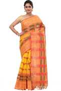 Traditional Bengali Tant saree crafted by skilled village weavers using pure cotton and traditional handloom techniques. This handloom saree represents the cultural heritage of Bengal, featuring lightweight texture, vibrant color, and crisp finish. Ideal for Durga Puja, festive occasions, and Indian ethnic celebrations. Each Bengali Tant saree is handmade with care in rural Bengal, showcasing the richness of Tant weaving. The breathable cotton fabric ensures comfort, while the intricate design reflects true Bengali craftsmanship. A perfect blend of tradition and elegance, this Bengali handloom saree is a celebration of Indian textile art and Durga Puja ethnic fashion.