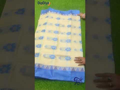 DipDiya Temple Border Tant Pure Cotton Saree (Light Blue)