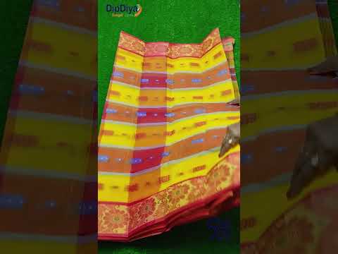 DipDiya Woven Tant Pure Cotton Saree (Red, Yellow)