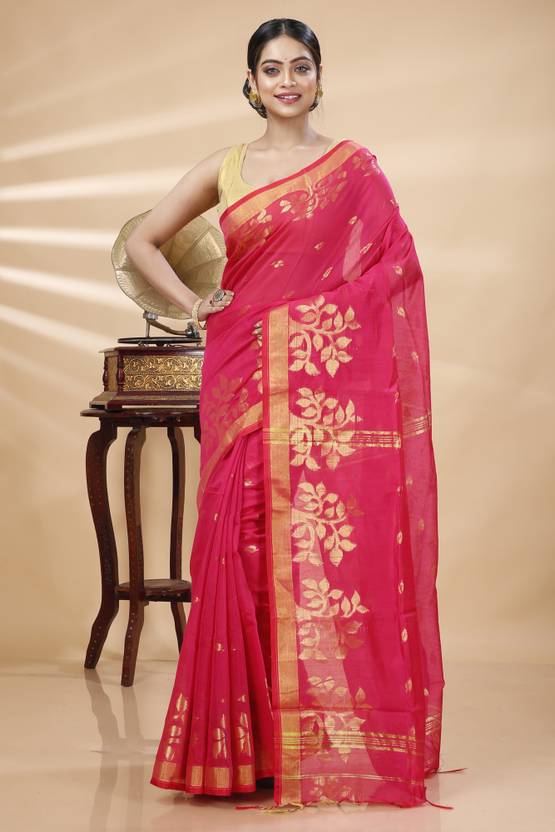Experience the elegance of handwoven Shantipur and Fulia Bengali Cotton Tant sarees. Crafted with love by skilled artisans, these lightweight, breathable handloom sarees feature vibrant colours and intricate designs. Celebrate tradition and add a touch of Bengali heritage to your wardrobe with our finest collection of authentic Tant sarees.