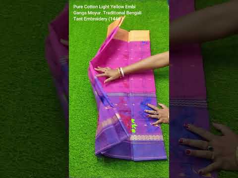 PuJoy Embroidered, Self Design, Woven Tant Pure Cotton Saree (Pur...