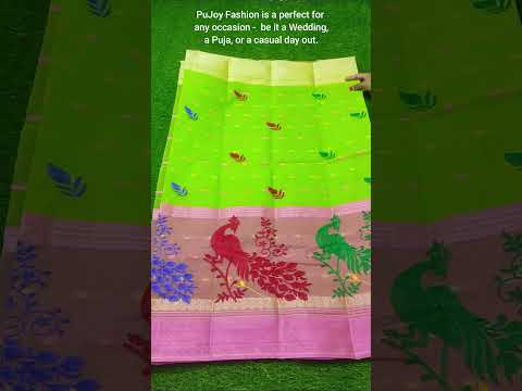PuJoy Embroidered, Self Design, Woven Tant Pure Cotton Saree (Lig...