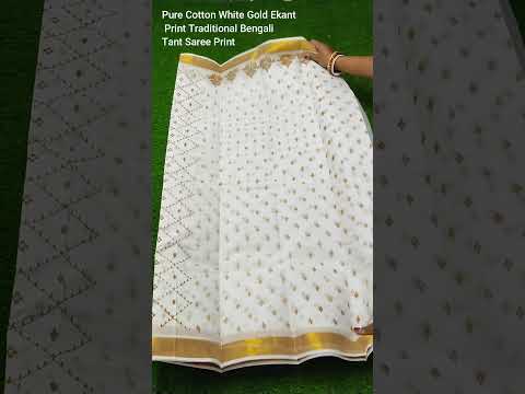 PuJoy Printed, Woven Tant Pure Cotton Saree (White, Gold)