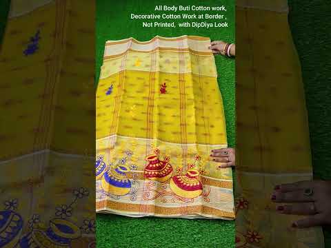 DipDiya Embroidered, Woven Tant Pure Cotton Saree Yellow