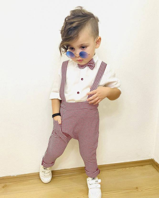 Pulseburry Dungaree For Baby Boys & Baby Girls Party Checkered Cotton Blend (Maroon, Pack of 1)