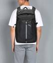 Two-way zip opening into main compartment, zip opening into top compartment, zip pocket on front, side mesh pockets, adjustable webbing compression straps on side, elastic lining laptop compartment inside main compartment, 150D Polyester lining with PU backing, adjustable padded curved shoulder straps with reflective Cat branded loop and airmesh underneath, padded backpanel with airmesh detail, webbing carry handle, reflective Durabase tape on front, metal zip pullers with PUMA branded webbing tape, metal zip puller with cord and PUMA branded easy grip cord end on front pocket, Cat logo print on front.; Brand Color is Puma Black.