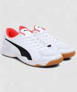 Product Story: Crush Your Competition With Sleek, Sporty Style In The All-Purpose Auriz Indoor Sports Shoes. Designed Specifically For Indoor Play, With Support For Torsional Movement And A Rubber Outsole For Grip And Stability, You'Ll Be Perfectly Prepared For Peak Performance. Features & Benefits Cmeva: Puma'S Compression-Moulded Eva Material For Lightweight Performance Details:: Synthetic Pu And Mesh Upper For Durability And Comfort Non-Marking Rubber Outsole Provides Grip And Stability For Indoor Sports Puma Formstrip At Medial And Lateral Sides Puma Cat Logo At Medial Toe And Tongue