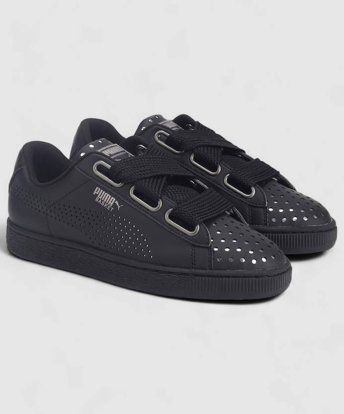 Originate from the PUMA Archive back in 1971, this was the leather answer to the Suede. It's singular but yet clean and simple design propelled this shoe into the sneaker hall of fame. The Basket Heart sees satin grace the basketball icon. Additionally woven bow lacing is provided within the pack. This premium execution features a perforated upper with a metallic underlay and metallic details.