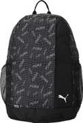 Two-way zip opening into main compartment, zip opening into front compartment, two side mesh pockets, lining compartment inside main compartment, PUMA branded 150D Polyester lining with PU backing, adjustable and padded shoulder straps with stitching detail and PUMA Cat branded reflective loop, padded back panel with stitching line, webbing carry handle, branded metal zip pullers on main compartment, metal zip puller with webbing tape on front pocket, PUMA wordmarked reflective tape and PUMA Cat logo print on front panel.