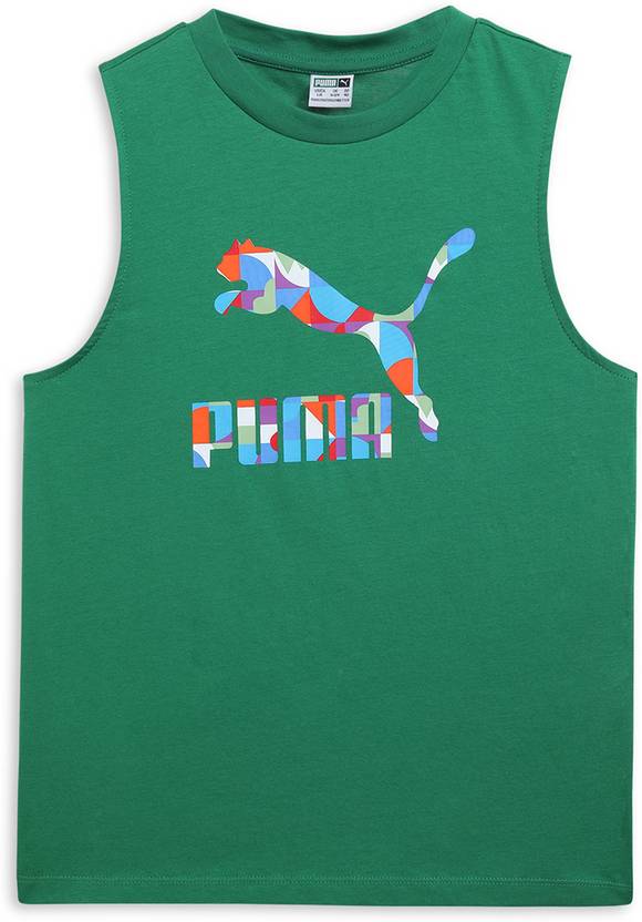 PUMA Boys Solid Cotton Blend Regular T Shirt (Green, Pack of 1)