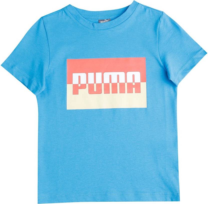 PUMA Graphic Box Logo Tee B Boys Typography Cotton Blend Regular T Shirt (Blue, Pack of 1)