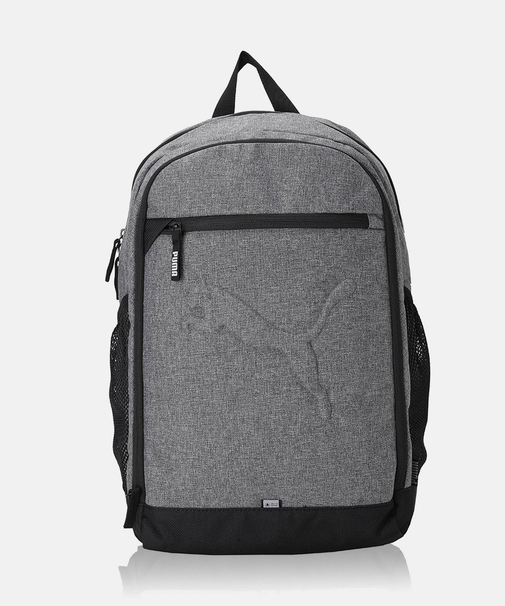PRODUCT STORY : Get busy with it in this practical backpack that's perfect for stowing your stuff on the move. Organise your life in style with this sleek design featuring plenty of handy pockets and comfortable padded straps plus an outsized PUMA Cat logo for a little bit of feline fun. Practical PUMA design meets bold sportswear style: we're buzzing. FEATURES & BENEFITS : Dope Dye: Dope Dye is one of PUMAs answers to reduce our environmental impact. Dope Dye process reduces the use of water, energy and thus CO2 emission compared with the traditional dyeing process, Recycled Content: Made with at least 20% recycled material as a step toward a better future, bluesign: As a bluesign SYSTEM PARTNER we are a responsible acting party of the textile value chain, committed to a clean and safe input stream management approach DETAILS : Two-way zip opening into main compartment, Padded back panel, Durabase base panel, Adjustable curved shoulder straps, Zip front pocket, Two side mesh pockets, Elastic lining laptop compartment inside main compartment, Embossed 3D PUMA Cat Logo on front, 34cm x 47cm x 17cm (26L)