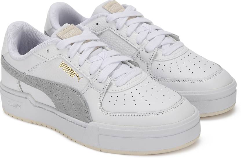 PRODUCT STORY : Our CA Pro takes inspiration from the original California we released back in the 80s. It has a look thats both classic and modern, featuring a perforated toe just like the OG statement panelling, and the famous PUMA Formstrip. On this pair, the clean-cut leather upper has a flash of coloured suede across the Formstrip that gives a nod to our sporting heritage. DETAILS : Heel type: Flat.Shoe width: Regular fit.Heel-to-toe-drop: 0 mm.Leather upper.Suede overlays.Perforated toe.Rubber outsole.PUMA Formstrip on the medial and lateral side.PUMA Cat Logo on the heel.