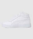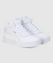 PRODUCT STORY : Walk tall and walk confident in the Carina 2.0 Mid. Taking its design cues from the '80s, the Carina feels right at home with the laid-back sneaker style of Californian beach towns. This edition levels up with its platform heel and mid-boot construction. Wider lines on the heel and perforations on the vamp deliver an edgy, urban look, while our SOFTFOAM+ sockliner has got you covered for soft cushioning and comfort all day long. FEATURES & BENEFITS : Recycled Content: Made with at least 20% recycled material as a step toward a better future, SOFTFOAM+: Step-in comfort sockliner designed to provide soft cushioning thanks to its extra thick heel DETAILS : Mid-boot construction, Leather upper with recycled material, Perforated vamp, Hook-and-loop strap closure for easy on/off, Rubber midsole and outsole, Platform heel with wider vertical lines, PUMA Formstrip on medial and lateral sides, PUMA Cat Logo on heel