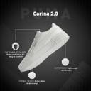 Product Story: Step into the spotlight with the PUMA Carina 2.0 Women's Sneakers. Designed as a low boot with a lacing system, these sneakers inherit the Carina DNA and features a low to the ground tooling and a sleeker upper for a clean court silhouette from the '80s, encapsulating the essence of sneakerhead culture from Californian beach towns. With their understated yet timeless design, they’re the go-to choice for those who appreciate subtlety and class in their kicks.Details: Heel type: Platform.Shoe width: Regular fit.Heel-to-toe-drop: 0 mm.Shoe pronation: Neutral.Low boot.Synthetic upper with perforations.PUMA Formstrip on lateral side.EVA outsole.