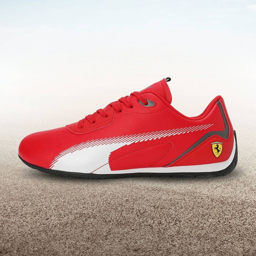 PRODUCT STORY : We're taking it back to the '80s with the latest iteration of the Scuderia Ferrari Neo Cat driving shoes. Inspired by our OG Bellof's driving shoes, this version reps a low-cut boot with a clean upper with some perforation details on the lateral and vamp. The Motorsport DNA is at the forefront along with the marque's signature colours. FEATURES & BENEFITS : The upper of the shoes is made with at least 30% recycled materials and the bottom is made with at least 10% recycled materials. DETAILS : Low-cut boot Synthetic upper Laces Perforation details and lateral webbing with Scuderia Ferrari branding Textile sockliner Rubber outsole