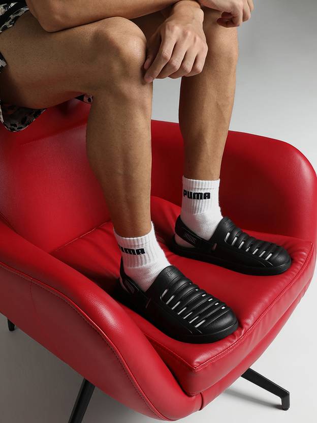 Product Story : Slip into ultimate comfort and style with the PUMA Men's Clogs Crafted with molded injected EVA construction, these clogs offer a snug and comfy fit that'll make you feel like you're walking on clouds. The textured footbed adds an extra layer of comfort, while the bottom grooves ensure superior grip, perfect for those poolside adventures or laid-back summer strolls. Plus, they're water-resistant, so you can rock them worry-free even on those hot summer days. Details : Molded injected EVA construction,Textured footbed for comfort, bottom grooves for superior grip,Synthetic upper, EVA outsole,Water resistant,Velcro closure,PUMA Wordmark logo .