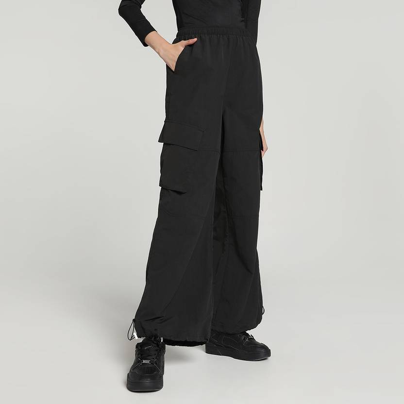PUMA DARE TO Relaxed Woven Solid Women Black Track Pants