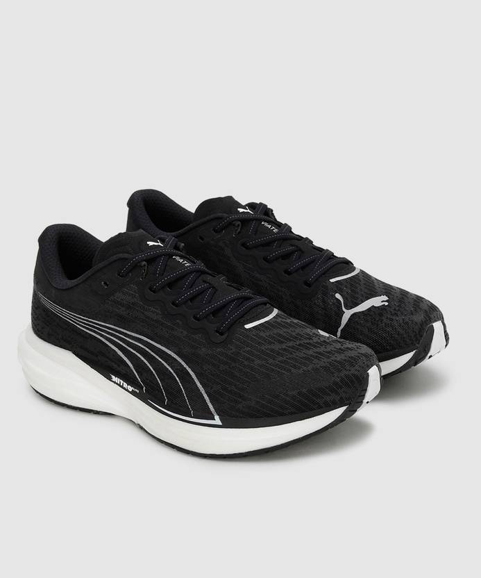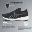 PRODUCT STORY : The Deviate NITRO 2 just like v1, only improved. Its the max cushion, max performance running shoe that makes going faster even easier. This time in a wider fit. The update includes NITRO Elite foam for improved responsiveness, a reworked collar to reduce heel slip, and a lighter, asymmetrical base that works better with your body across all distances be it short runs, marathons, and even ultras. FEATURES & BENEFITS : NITRO Elite: Premium performance foam technology that provides pinnacle responsiveness in an extremely lightweight package, PWRPLATE: Innovative carbon composite plate designed for maximum energy transfer and optimised running efficiency, PWRTAPE: Targeted upper reinforcement for support and durability, PUMAGRIP: Durable performance rubber compound designed for all-surface traction DETAILS : Wide fit, Breathable mesh upper, Reflective design elements, TPU heel spoiler, Best for: Neutral pronators, Heel-to-toe drop: 6mm, Cushioning level: Max, PUMA Formstrip on the lateral side