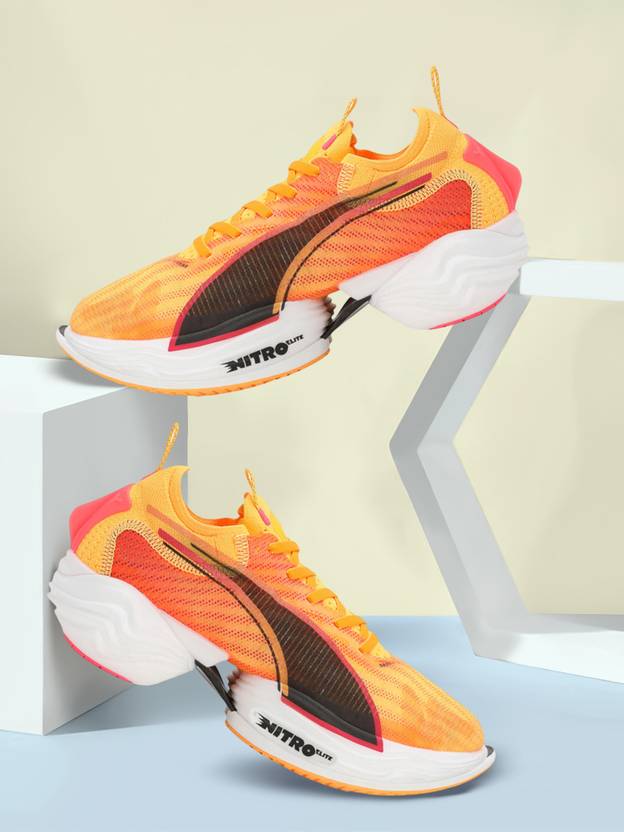 PRODUCT STORY : FAST-R NITRO™ ELITE 2 is PUMA’s ultimate race-day footwear with enhanced NITROFOAM™ ELITE and PWRPLATE technologies. Enjoy a more propulsive ride and optimized running economy with increased stack heights and an aggressive shape. The ULTRAWEAVE upper ensures a lightweight and secure fit, while PWRTAPE support keeps you firmly in control as you conquer your race-course. From short distances to marathons, this shoe offers unbeatable speed and cushioning for your best performance yet.FEATURES & BENEFITS : ENHANCED NITROFOAM™ ELITE MIDSOLE Innovative Nitrogen-infused foam technology that uses the most premium raw materials to provide maximal explosive energy for race day,EXTENDED PWRPLATE: Full-length Carbon Fiber plate engineered for race day to provide maximal propulsion, with extension beyond the toe to increase propulsion and step length stride after stride on race day,PUMAGRIP: A durable rubber outsole that offers multi-surface traction.DETAILS : Regular fit,Stack height: 32mm to 40mm,Heel-to-toe drop: 8mm,Recommended for: neutral pronators,Shoe weight: 265g (size EU 42).