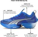 PRODUCT STORY : Double down on race day with the FAST-R NITRO Elite. A cutting-edge, two-part midsole features best-in-class NITRO Elite for supreme responsiveness and innovative PWRPLATE technology to ensure maximum running efficiency and stability. The marathon-worthy racing shoe offers a sock-like fit in breathable monomesh, with targeted PWRTAPE reinforcement for added durability and support. The cushioned heel works with a reactive forefoot for peak propulsion, while PUMAGRIP provides multi-surface traction without added bulk. Travel at the speed of lightweight. FEATURES & BENEFITS : CUSHIONING: NITRO Elite: Advanced technology provides pinnacle responsiveness in an extremely lightweight package.ENERGY: PWRPLATE: An engineered carbon fiber plate stabilizes the midsole while maximizing energy transfer.SUPPORT: PWRTAPE: Targeted reinforcement for upper support and durability.GRIP: PUMAGRIP: HIGH TRACTION RUBBER: A durable rubber compound provides multi-surface traction that wont weigh you down.. DETAILS : Low boot construction.Mono-mesh upper reinforced with PWRTAPE for support.NITRO ELITE midsole for unrivalled responsiveness.PUMAGRIP lightweight rubber outsole.Incorporated tongue for a sock-like feel.Fin provides heel structure and a dynamic visual for race day.