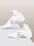 PRODUCT STORY : The Future Cat is the most iconic lifestyle driving shoe within the PUMA motorsport range. The quality upper and unique outsole provide not only a high level of comfort while driving and walking, but also a fresh new design. This Scuderia Ferrari version features a synthetic upper and suede PUMA Formstrip.FEATURES & BENEFITS : The upper of the shoes is made with at least 20% recycled materials,ProFoam: Lightweight EVA designed to cushion your landing and propel your next step.DETAILS : Regular fit,Mesh and synthetic upper,Lace closure with hook and loop fastener,Rubber outsole,Suede PUMA Formstrip,PU moulded wing-shaped heel counter,Scuderia Ferrari shield on the quarter,PUMA branding details,Mid boot.