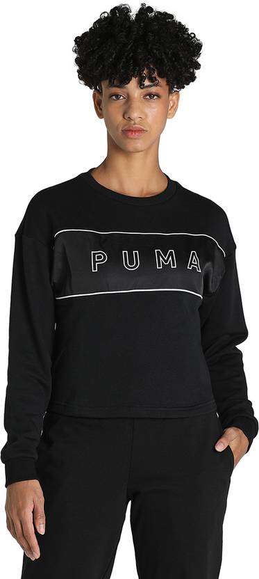 PRODUCT STORY : Show your style snarl in our Rebel Crew Training Sweat Shirt, featuring sleek graphical elements and cotton from Forever Better Initiative for fierce, feelgood fashion. DETAILS : Relaxed fit, Rib cuffs for snug fit, PUMA graphic prints on each sleeve, Graphic Cat Logo rubber print at left chest