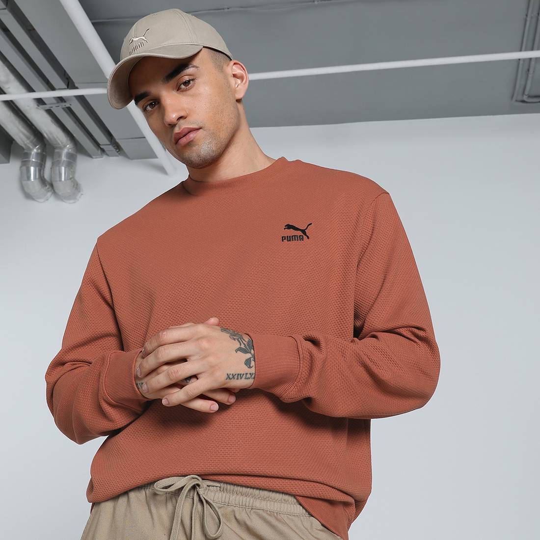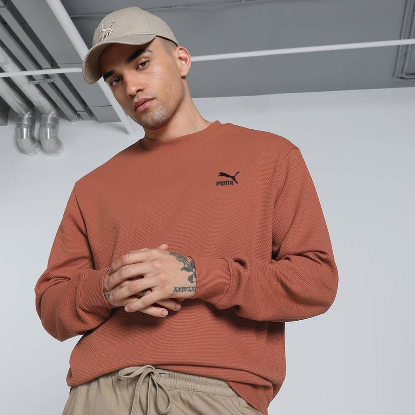 PRODUCT STORY : For lounging in style or strolling about town, slip on the PUMA CLASSICS Crew Neck Sweatshirt - it's everyday comfort redefined. The lightweight fabric and ergonomic design ensure maximum freedom of movement, while the subtle PUMA logo adds a touch of athletic flair. With its sleek fit, textured knit patterns, and rib cuffs you'll be sporting premium basics for everyday adventures.DetailsRegular fit.Long sleeves.Crew neck.Rib cuffs and hem.PUMA Cat logo at chest.