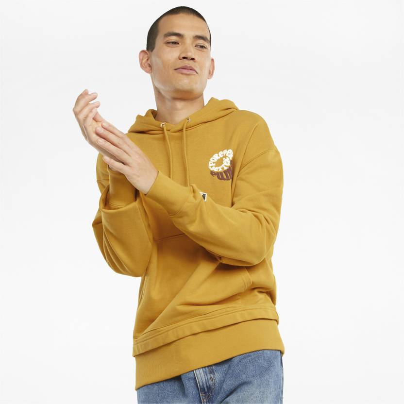 PRODUCT STORY: Easy to style and easier to wear: this Downtown Hoodie is an eclectic take on a comfort classic, with an eye-catching print graphic panel that adds a touch of unpredictability to any outfit. A kangaroo pocket, hood with adjustable drawstring, and ribbed cuffs and hem complete the look. DETAILS A relaxed fit for a laid-back look from head to toe Hood with external drawcords for customized fit Functional kangaroo pocket with space for small items Ribbed cuffs and hem for a masculine silhouette Rubber print graphic panel Timeless embroidered PUMA badge on the sleeve
