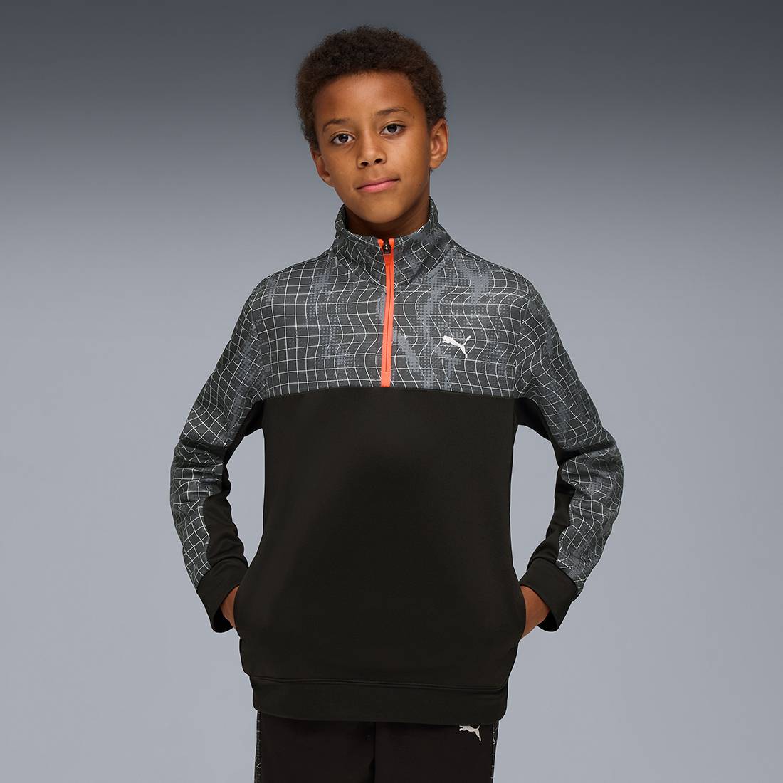 PRODUCT STORY : For boys who bring energy to every session, this jacket is their perfect training partner. Whether it's warm-ups or cooldowns, the moisture-wicking fabric and breathable pique knit keep them dry and focused. With a half-zip design and bold print, it's made for movement and made to stand out. FEATURES & BENEFITS : dryCELL: Keeps you dry and comfortable, DETAILS : Fit: Regular, Material: 100% Polyester, Fabric Type: Knitted Piqué, Neck: Crew Neck, Sleeves: Long sleeves, Fastener: Half zip, Length: Regular, Pocket Type: Side pockets, Pattern: All-over print.